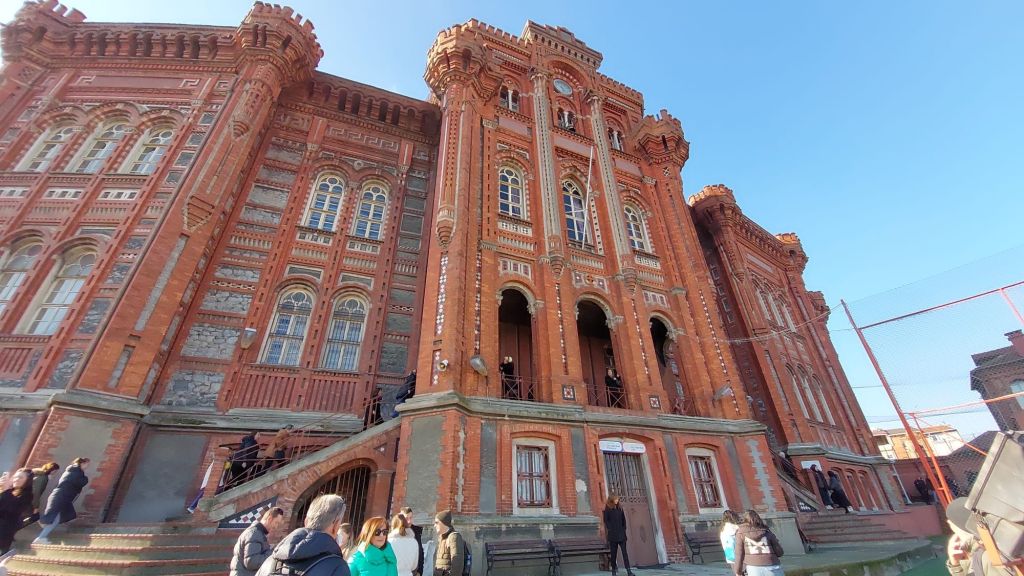 Demir Kilise’nin ardından, yokuşlu bir yolda ilerleyip başınızı kaldırdığınızda sizi Fener Rum Lisesi selamlıyor. Kırmızı tuğlaları, göğe uzanan kuleleri ve heybetli duruşuyla bu yapı, bir masal şatosu gibi tepeden tüm Balat’ı izliyor. İçeriye girmek için kermes gününü bekleyen kalabalığın coşkusu, binanın büyüsünü daha da artırıyor.