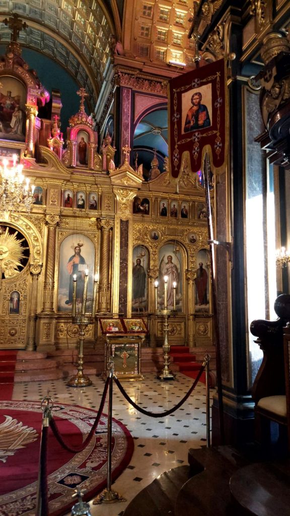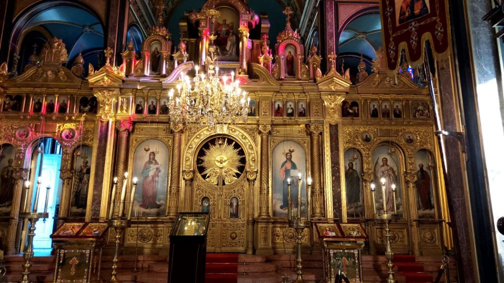 Altın işlemeli tavanlardan süzülen ışık demetleri, ikonaların üzerinde dans ederken, vitray pencerelerin renkleri adeta ruhunuzu okşuyor. Hanım görevlinin güler yüzlü açıklamaları, bu mekânın inceliklerini daha da anlamlı kılıyor: “Ölüler için yakılan mum alanının canlılar için yakılanlardan ayrı olması, ölüme duyulan saygının bir göstergesi…” Bu detay, ziyaretinize derin bir anlam katıyor. Kiliseden çıkarken sanki başka bir zamandan, bir masal diyarından dönüyormuş gibi hissediyorsunuz. 🕯️
