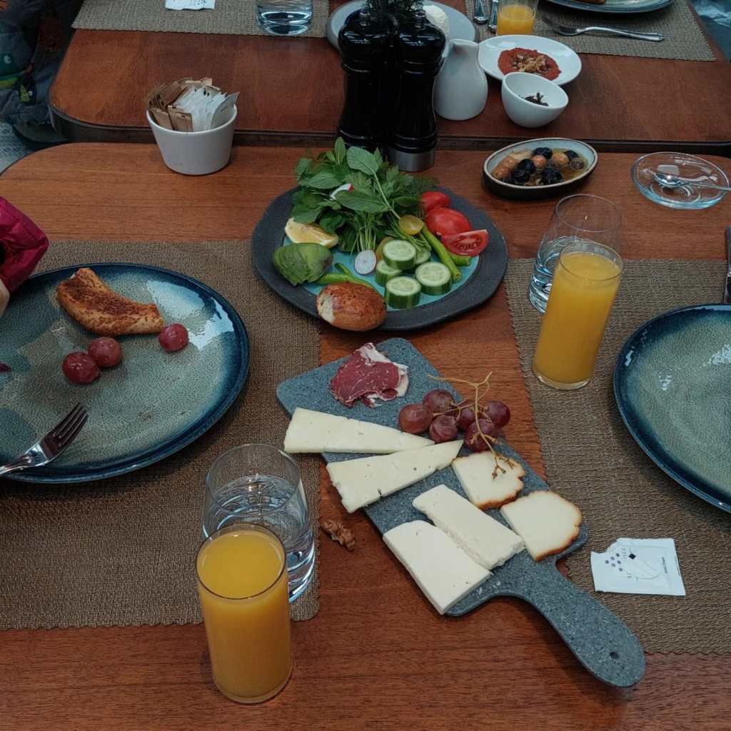 🎨 Chef Erdal mutfağından çıkan her tabak, bir sanat eseri gibi sunuluyor. Pankekler puf puf pamuk gibi dokusu, üzerindeki taze meyveler ve ev yapımı çikolata eşlikçisi ile çocukların favorisi oldu. Ev yapımı çikolata annelerin gönlünü fethecek kalitede. Benim favorim omletti, sunumu ve lezzetine bayıldım, kahvaltının sonunda gözleme ile denediğim erik marmelatı mayhoş tadı ve püre kıvamı ile bizi kendine hayran bıraktı. 🍓🍯 Yeşilliklerin taptaze aromaları damağımızda şölen yaratırken, Türk kahvesi konusunda biraz tereddütlü kaldım. Kahve düşkünü biri olarak aromasını yetersiz bulsamda, restoranın genel lezzet uyumuna gölge düşürecek bir detay değildi. ☕