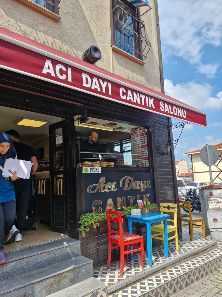 Bursa mutfağının en sevilen sokak lezzetlerinden biri olan cantık, yuvarlak şekli ve bol kıymalı iç harcıyla oldukça lezzetli. İncecik hamurun üzerine yayılan et harcı, taş fırında nar gibi kızarıyor. Yanına da bol köpüklü bir ayran alırsanız, şehre hızlı bir giriş yapmış oluyorsunuz! Biz “Acı Dayı Cantık” da kaşarlı, kavurmalı ve kıymalı çeşidi deneyimledik tabiki yanında açık ayran ile. Ayrıca peynirli çeşidi de mevcut ama ne yazık ki bizim ziyaret ettiğimiz saatte tükenmişti. Peynirli çeşidini de deneyimleyenler bizimle yorumlarda favori lezzetini paylaşabilir.😊