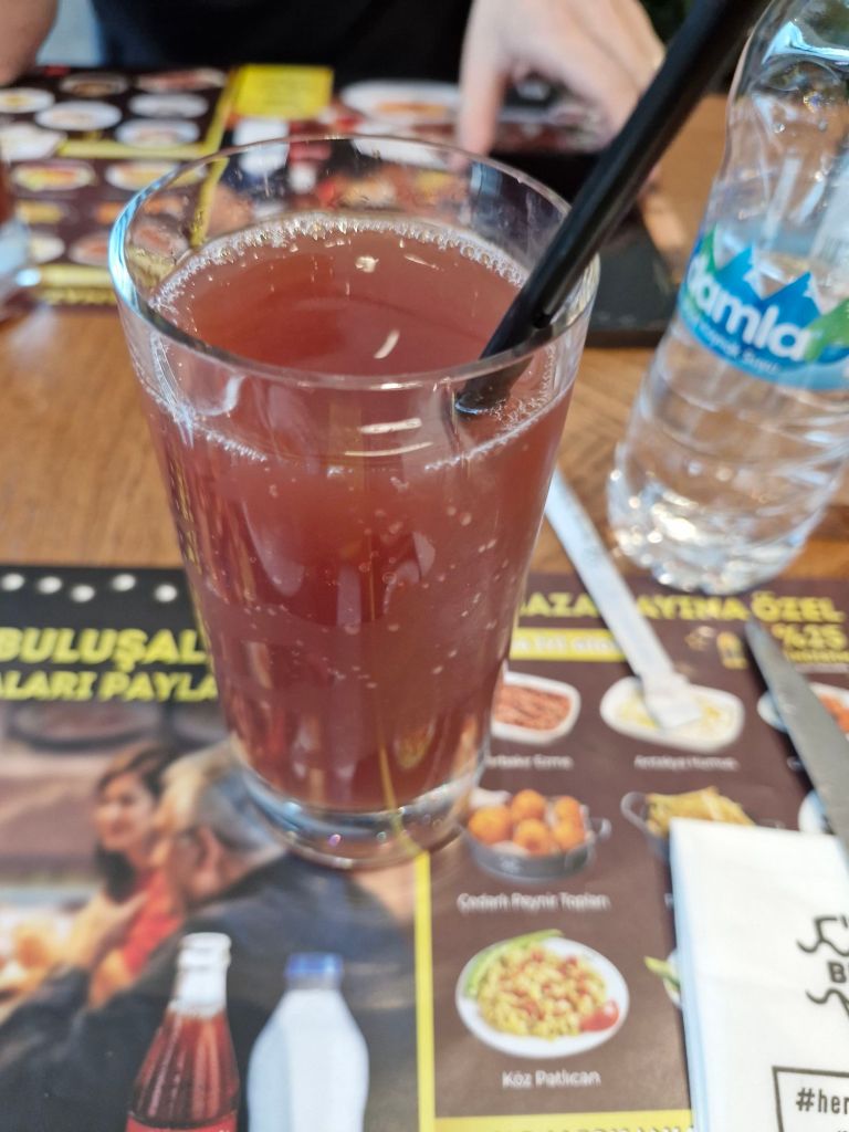 Bursa Kebap Evi’nde sunulan üzüm şırası, kebabın yanında mükemmel bir eşlikçi oldu. Doğal tadı, asitli içeceklere harika bir alternatif. İyi bir enerji kaynağı olduğunu söylemek mümkün. Çıkışta hediye olarak da satın alabilirsiniz, şişe şeklinde de satışı mevcut. 😊